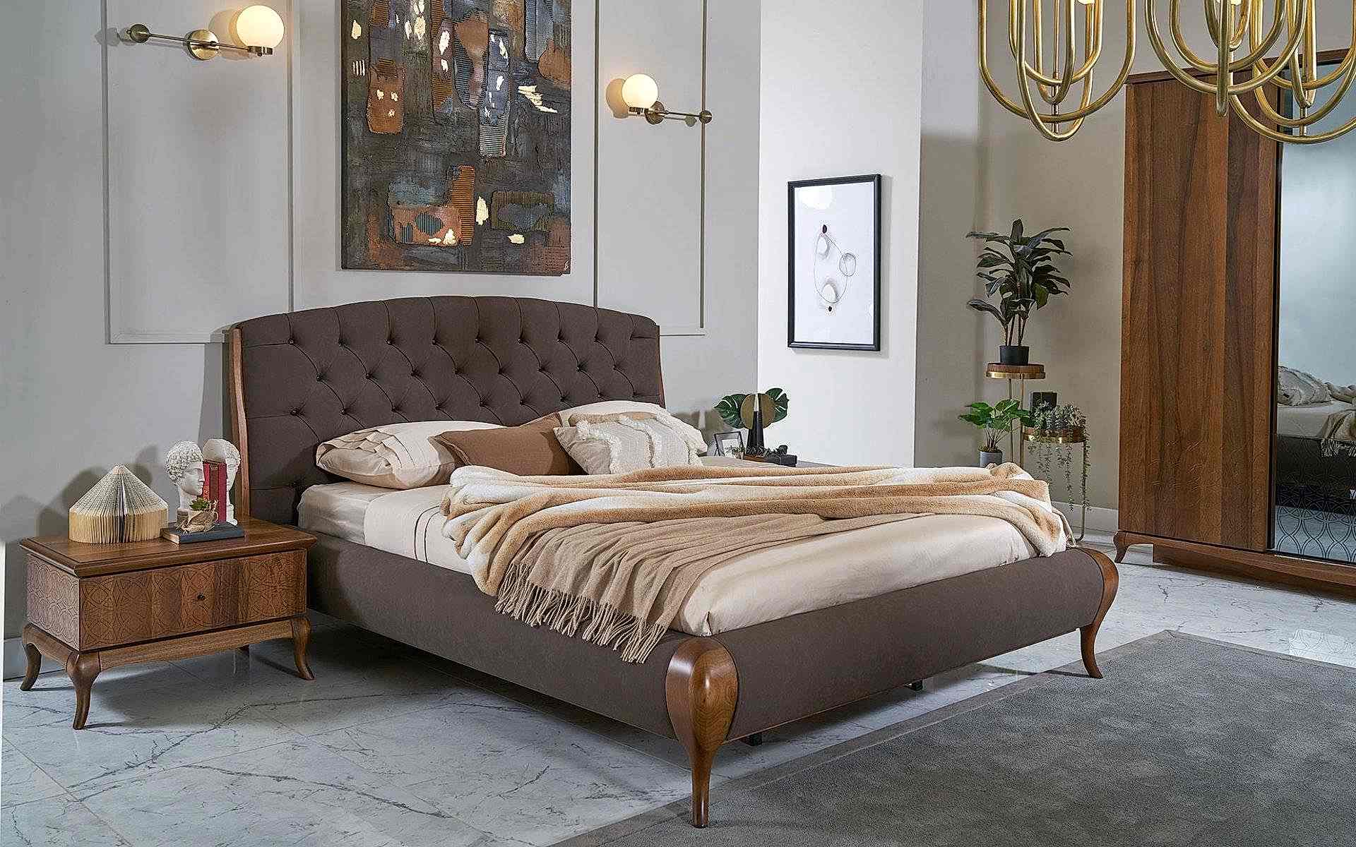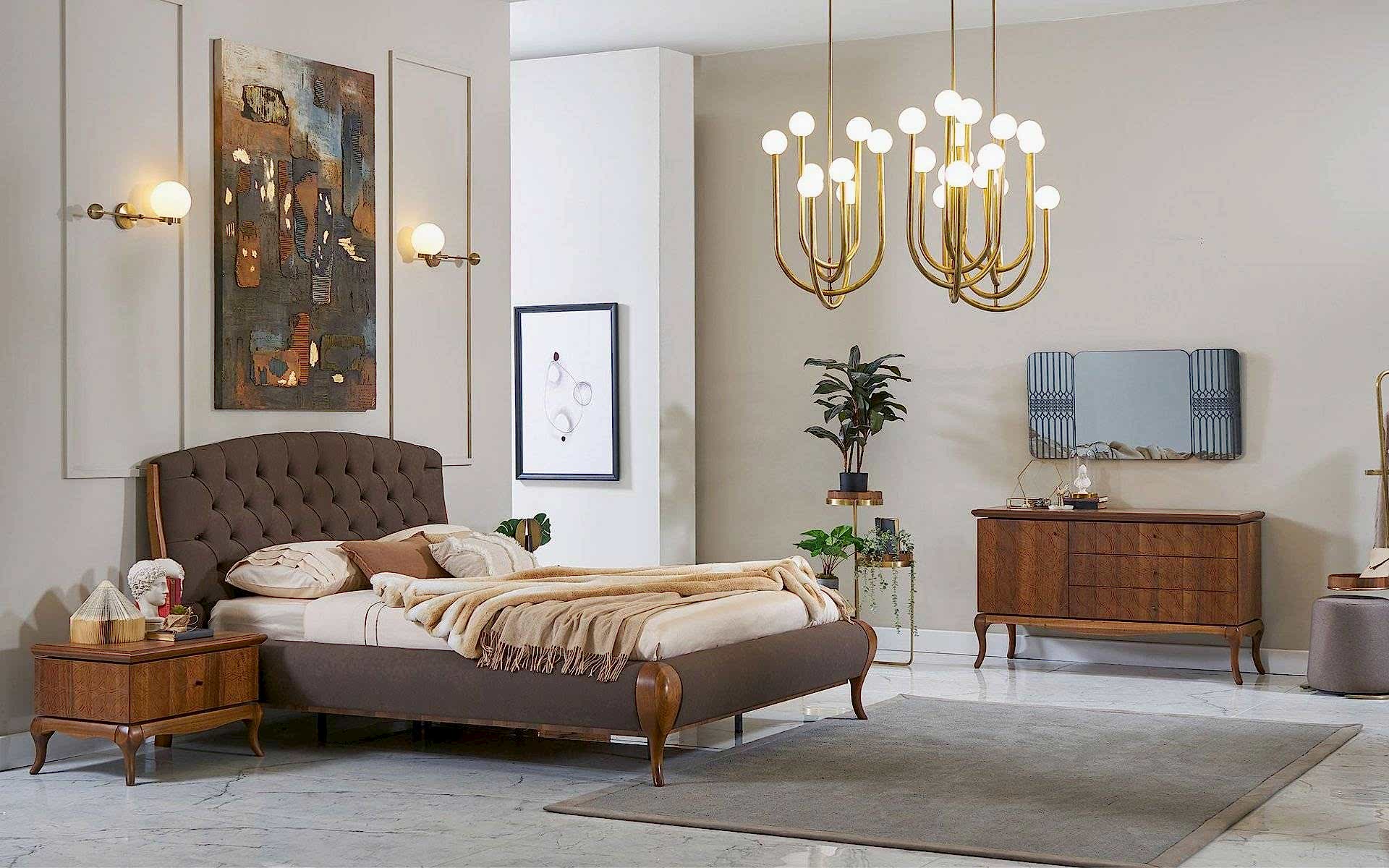 Art Ceviz Yatak Odası, doğal ceviz ağacının sıcak dokusunu modern tasarım çizgileriyle buluşturarak huzurlu bir yaşam alanı sunar. Estetik ve fonksiyonelliği bir araya getiren bu yatak odası takımı, geniş depolama alanları ve zarif detaylarıyla dikkat çeker.